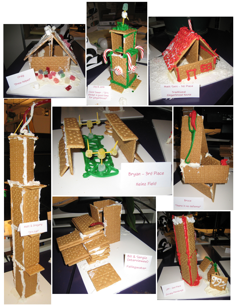 Gingerbread House Competition What happens when you give industrial designers and engineers the supplies to make gingerbread houses and 7 ½ minutes to do so? This happens: